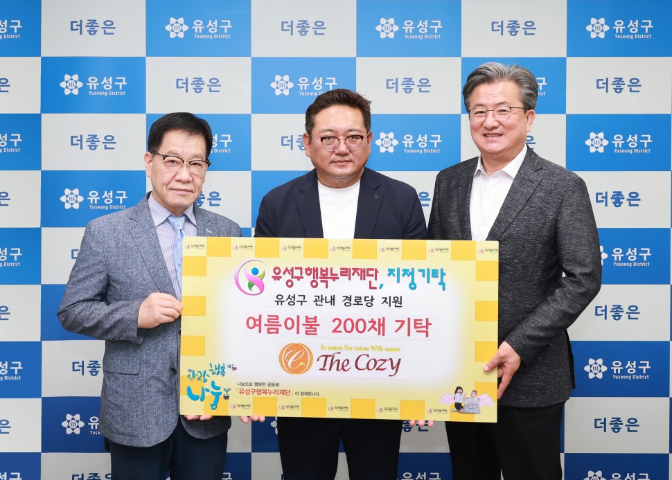 대전 유성구(구청장 정용래)는 15일 더 코지(대표 이흥우)가 1,100만 원 상당의 여름 이불 200채를 유성구행복누리재단에 기탁했다고 밝혔다.