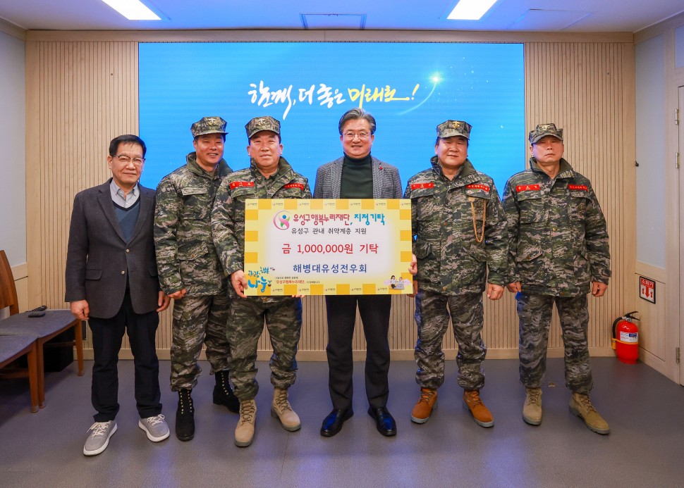 대전 유성구(구청장 정용래)는 26일 해병대유성전우회(회장 김기동)가 후원금 100만원을 유성구행복누리재단에 기탁했다고 밝혔다.
