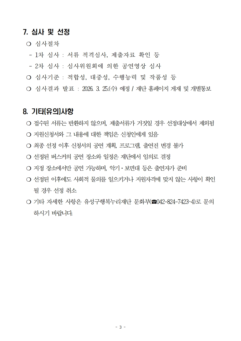 2026 음악이 있는 유성산책 버스킹 출연자 선정결과 공고